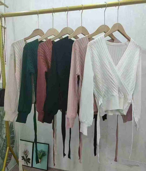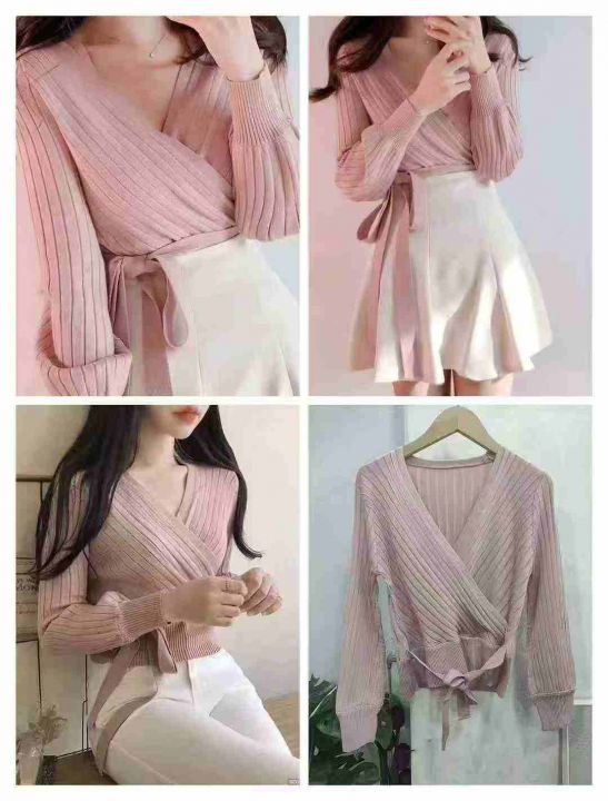 春秋新款修身收腰系带V领针织长袖衫,品质很好,大货杏色白色为主色,其他彩色一起二十件基本没有,独立包装,均码,650件左右,清6.9,分➕1
