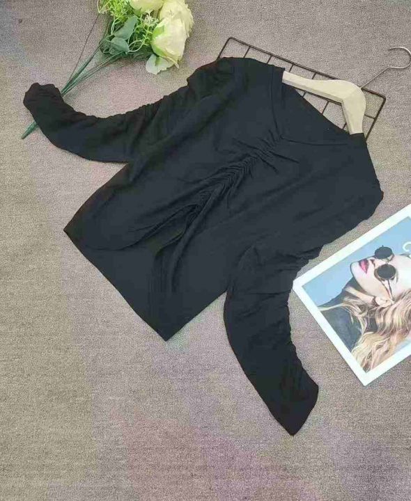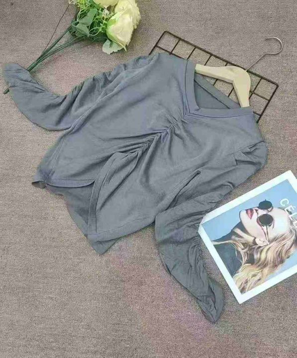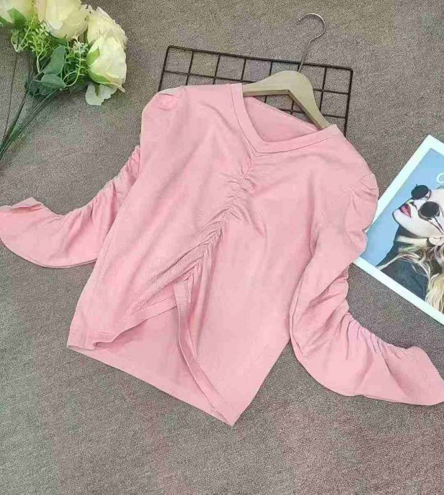 设计褶皱锁骨长袖辣妹修身新款收腰显瘦针织上衣,独立包装,均码,380件,清6.9,分➕1