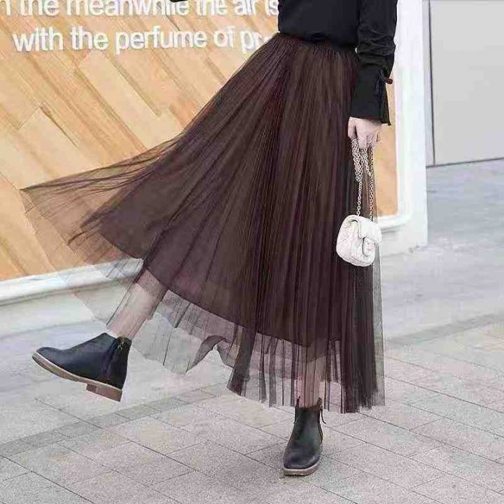 高腰双层网纱松紧腰半身裙小个子梨形身材a字设计感减龄飘仙长裙,独立包装,914条,码数S- L,双层网纱,S码裙长78厘米,分货+1 (货号0907#19)