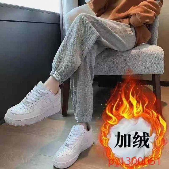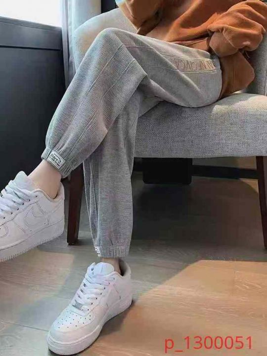 [月亮]:华夫格字母刺绣休闲运动束脚卫裤