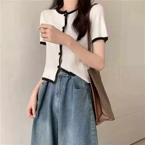 夏季新款韩系小香风撞色针织毛衣开衫,独立包装,均码面料柔软舒适弹力大,...