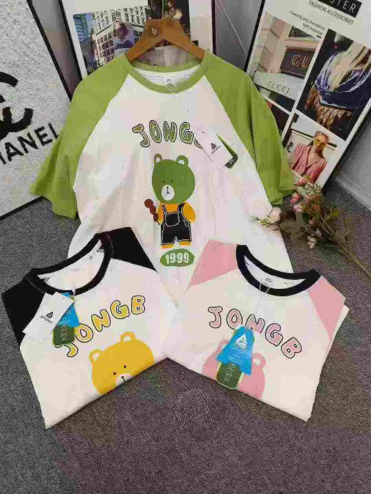 品牌童装小熊印花logo纯棉T恤,数量1500件左右,尺码110--160,整款三个色,纯棉面料后领包边,独立包装带吊牌,货品整洁质佳