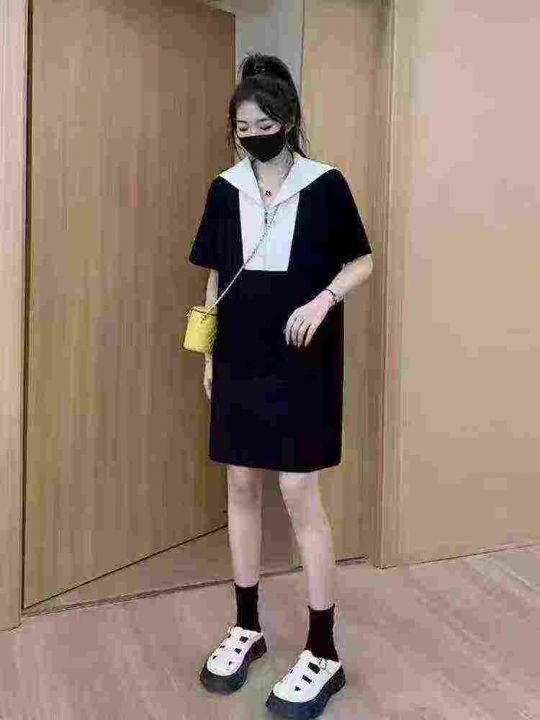 捡漏242条高领拉链短袖高端宽松印花辣妈减龄海军领棉连衣裙,独立包装,码数1-4码,1码裙#长90厘米,分货加1,(货号0910#30)