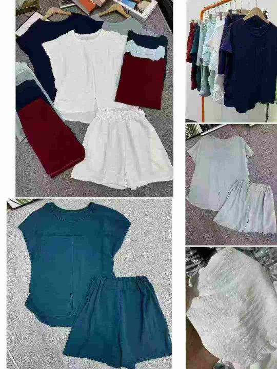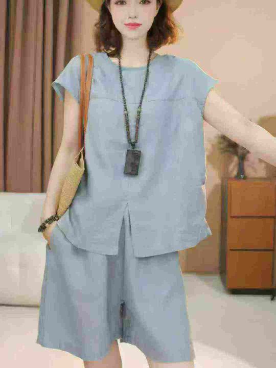 高级感短袖短裤两件套女士夏季大码欧货时尚洋气休闲穿搭套装,独立包装,亚麻面料手感柔软舒适透气质量,可入实体店,码数3-6码,数量1616套,分货加1(货号0911#33)