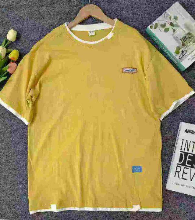 假两件宽松纯棉T恤,男港风潮流百搭痞帅落肩大板T,438件,M-5XL,黄色为主,后领包边过肩,独立包装,全清6.8元,分货+0.5