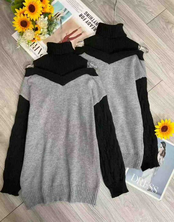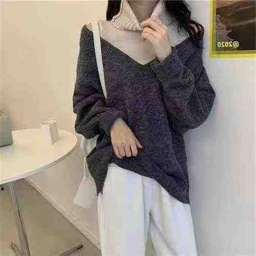 秋冬装新款慵懒风宽松撞色漏肩设计款小心机高领拼色套头毛衣,独立包装,面料软糯厚实,273件,全清5.9元超低价秒杀!模特上身效果可参考!