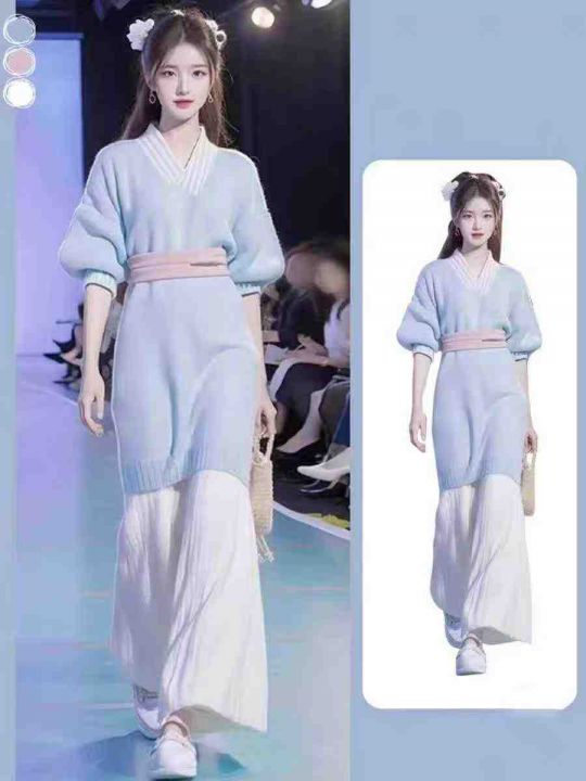 秋冬新款新中式慵懒风汉元素禅意国风加厚中长款毛衣连...