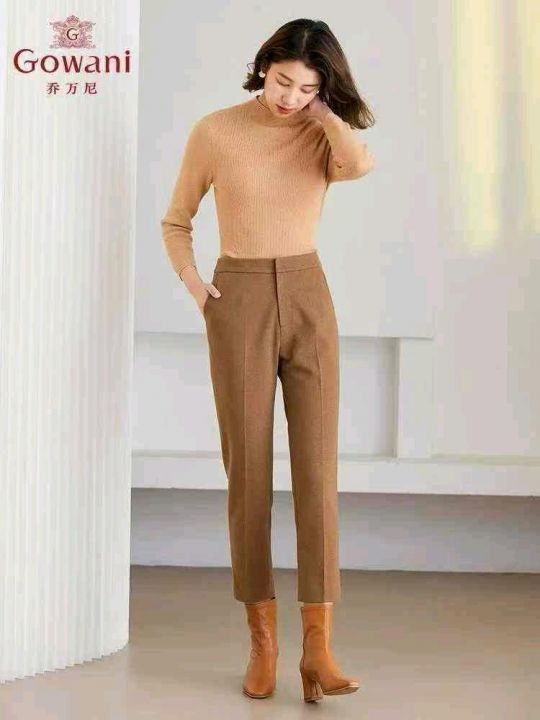 品牌女裤系列,#蔚雯,高端呢料秋冬款裤子,内里包边,两侧有口袋,数量300条左右,码数36-40码,单款棕色,独立包装吊牌,网路图供参考大概款式