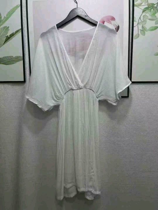 1650件.法式风复古V领高级感垂坠丝质连衣裙长裙➕夏季深V领性感露背连衣裙➕时尚优雅薄款凉爽弹力开衫外搭,三个款式如图,棉➕棉麻面料,无包装, 36.38.40码相当于S.M.L,全清 3.8,分货随机配货加一元