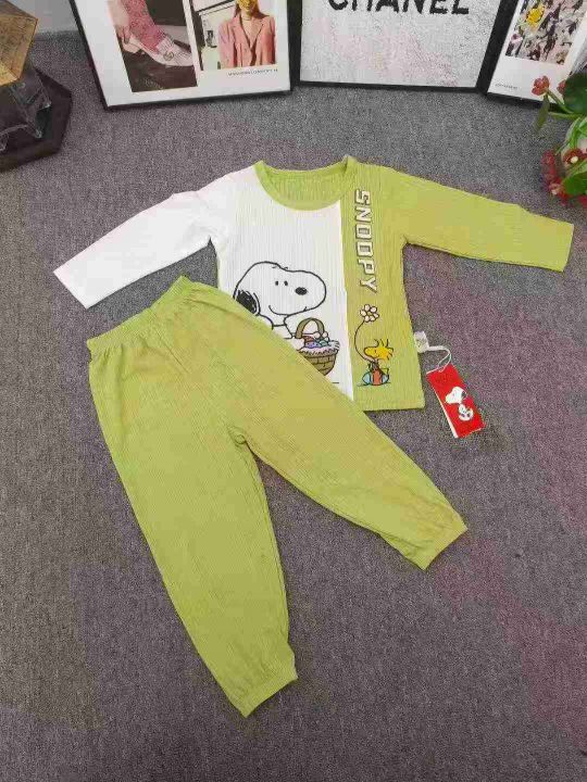 品牌童装长袖家居服套装,数量1000套左右,尺码90--150,整款单色两个品牌(史努比、baby),可分品牌出,独立包装带吊牌,货品整洁质佳