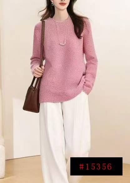 秋冬新款韩系小众净版简约宽松百搭单边绒软糯圆领套头毛衣,独立包装,均码...