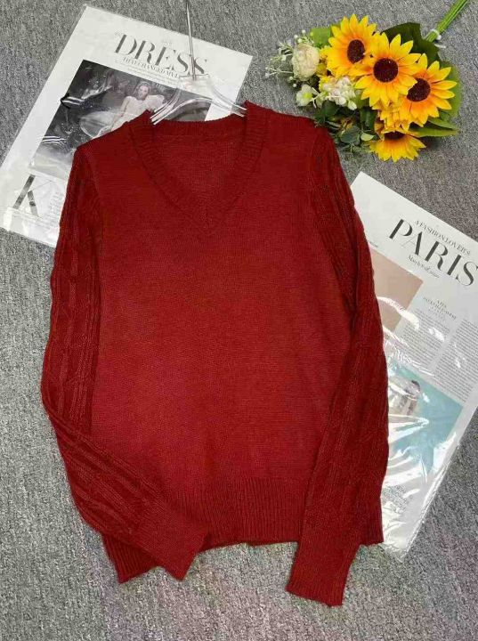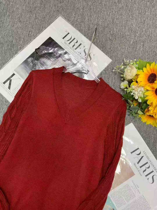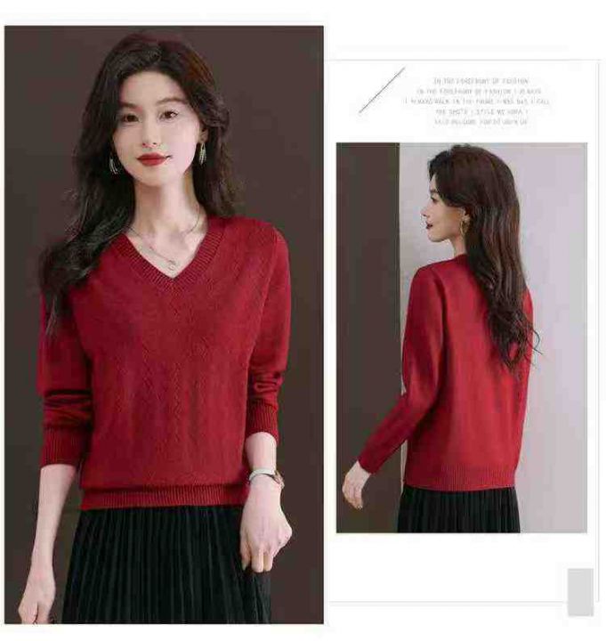秋季新款宽松显瘦V领红色套头毛衣,独立包装,均码面料软糯舒适弹力大,114件,全清5.9元超低价秒杀!