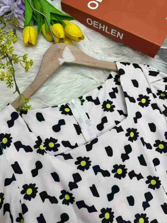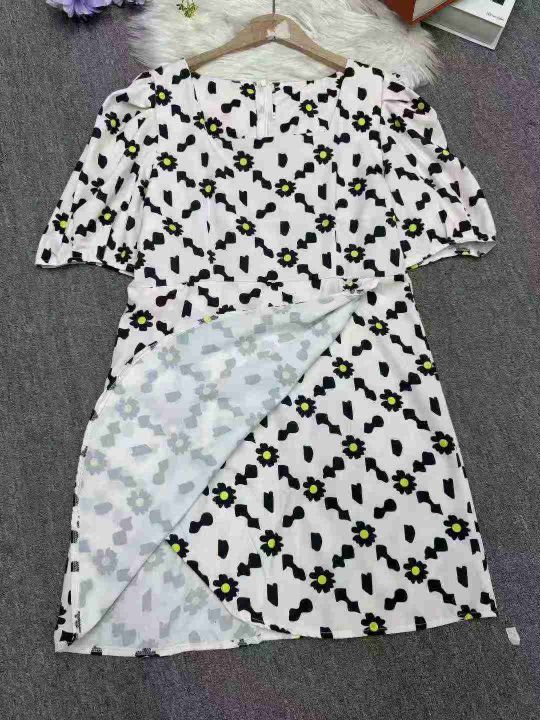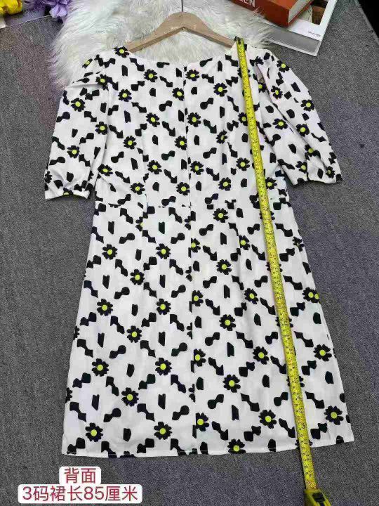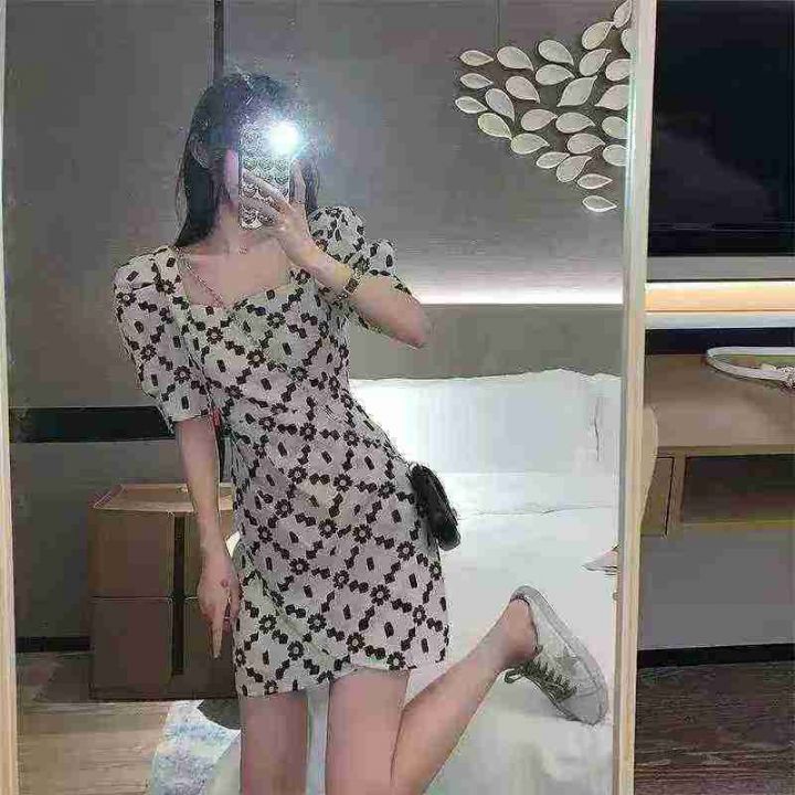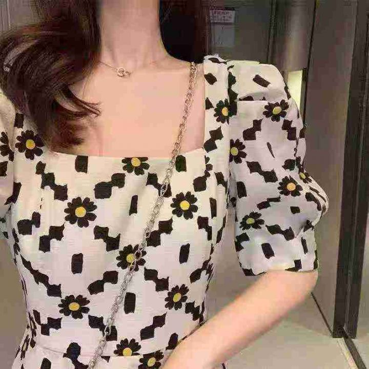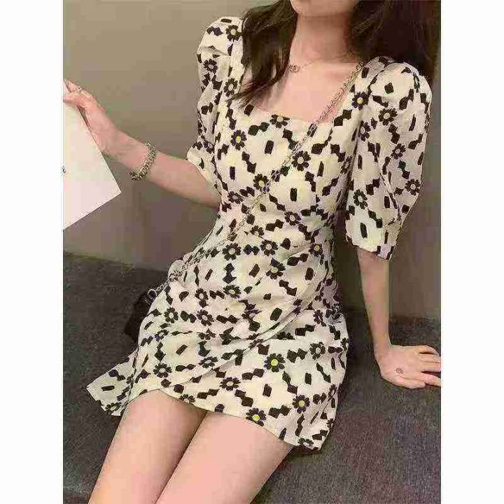 夏季热卖雏菊泡泡袖名媛气质显瘦短袖裙方领设计感连衣裙,独立包装,码数1-5码,数量550条,分货加1,(货号0913#45)