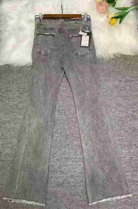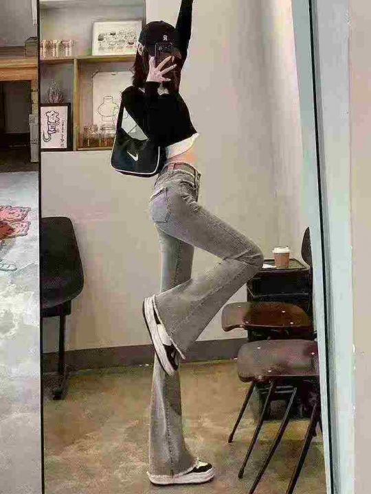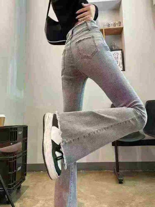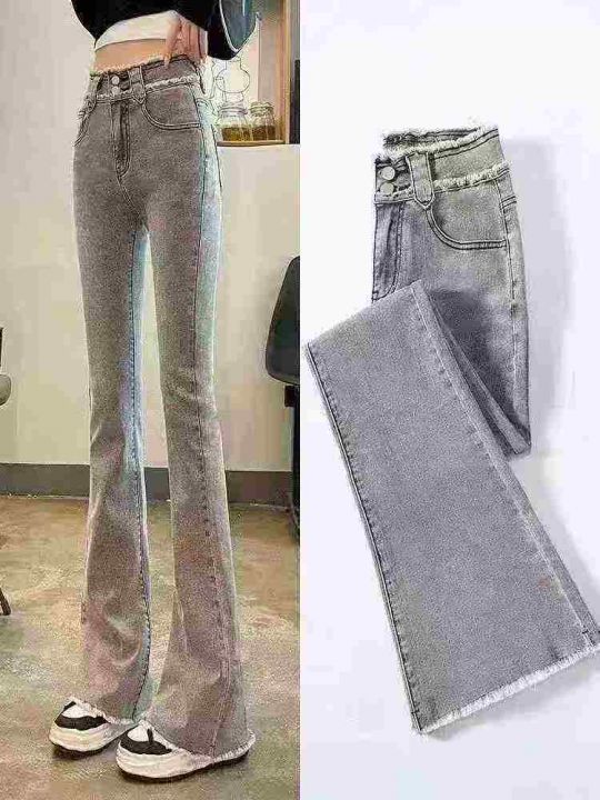 烟灰色高腰微喇叭牛仔裤女2025年夏季新款毛边马蹄喇叭显瘦长裤子110件,独立拉链袋包装,尺码S~3XL ,实体店质量,全清福利价13.8元