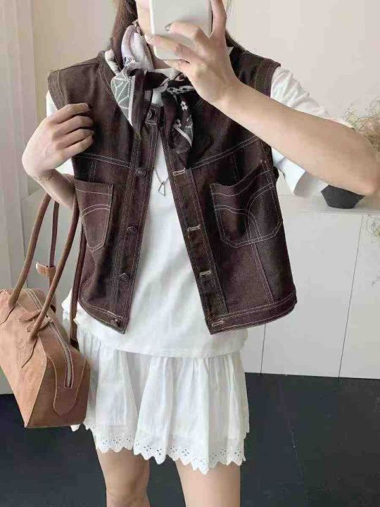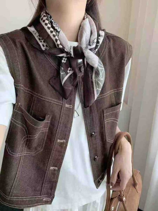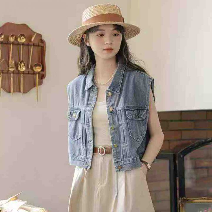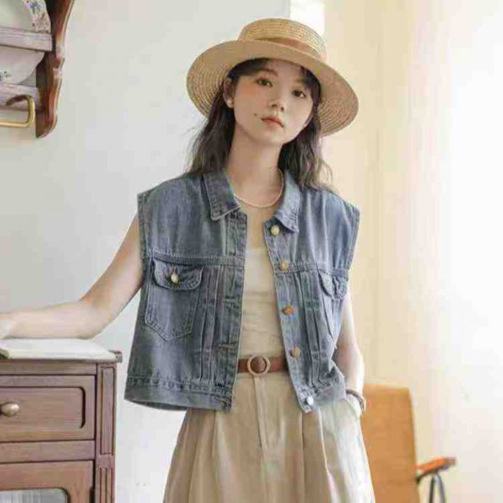 早秋新款韩版百搭个性洗水棉短款宽松显瘦牛仔马甲,独...