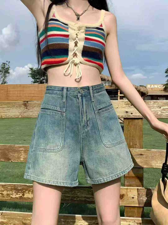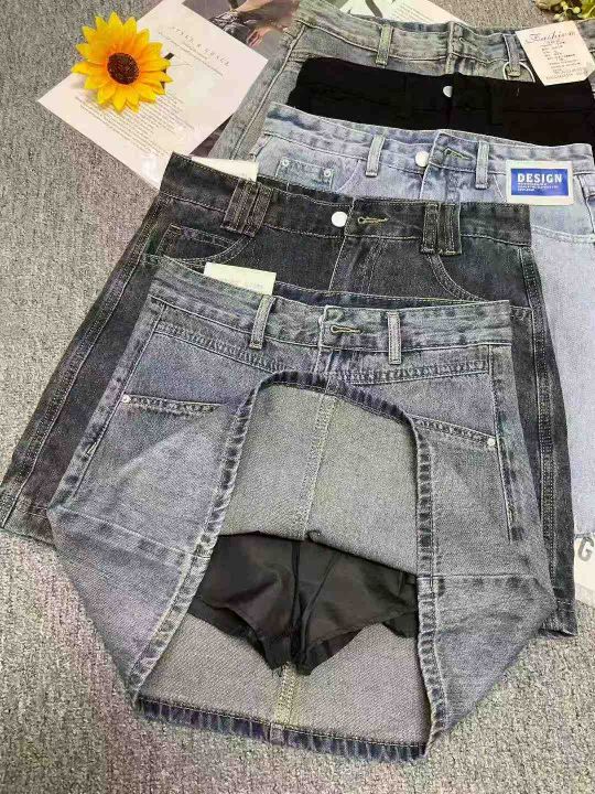 夏季新款女装洗水棉网红牛仔短裤短裙,图片款,码数S-...