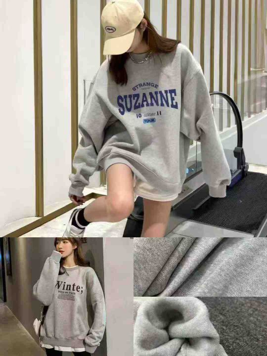 电商仓回收6500件潮牌男女同款宽松大版圆领加绒卫衣,...