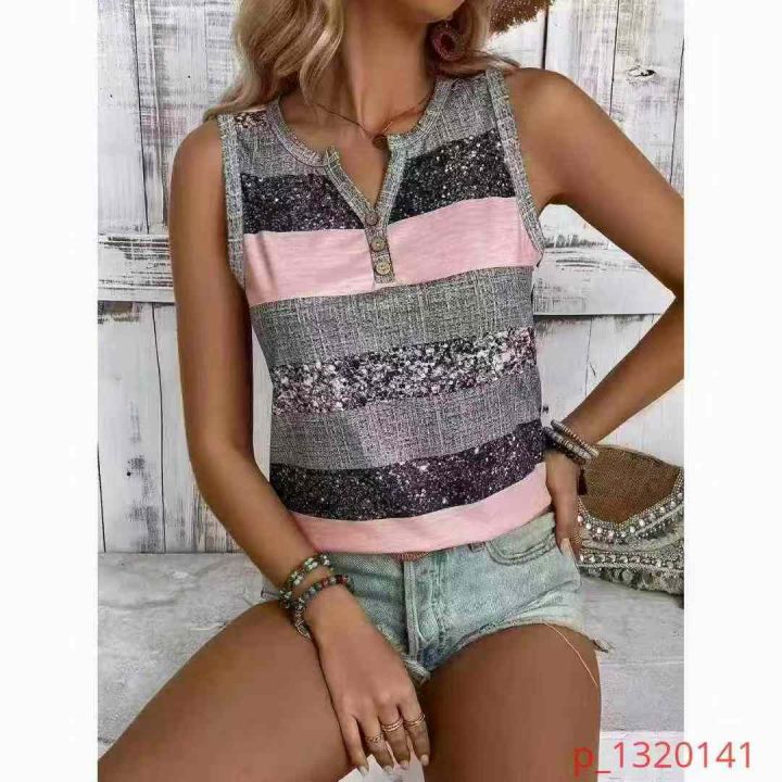 260件左右,欧美夏季新款女装条纹定位印花显瘦背心休...