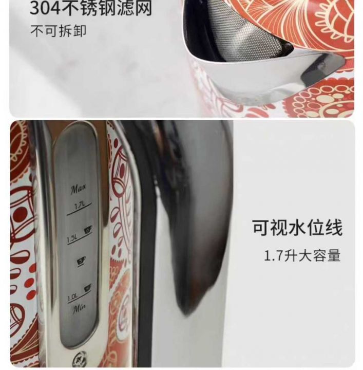 现代融合复古,生活与艺术的结合,经典腰果花元素,复刻在电热水壶上,桌面上的风景线