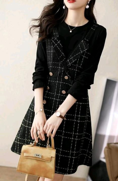 小香风气质连衣裙68件,清13.8,假两件拼接,侧腰拉链...