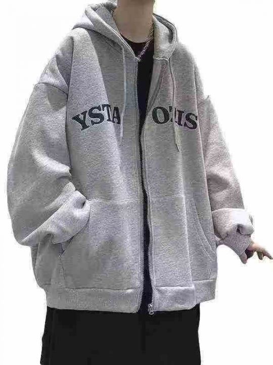 7.9清931 春秋复古潮牌男女卫衣开衫情侣装连帽宽松青少年字母加厚外套!图1...