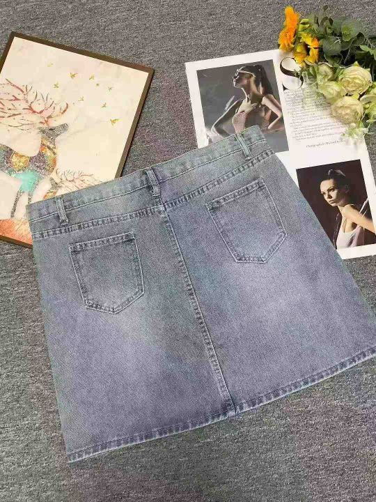 夏季新款设计款开叉钉珠绣花高腰大码胖妹妹洗水棉牛仔半身裙,独立包装,码数L--5xL码,144件,全清5.8元超低价秒杀!