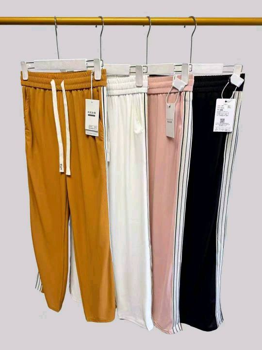 天猫精选780条 天猫在售款 时尚洋气高腰垂感窄版直筒侧边条纹拖地裤,整款四色,裤头内里有包边,高品质可入实体店,独立包装带吊牌 码数S~5XL 中间码多,全清12.8元分货加一
