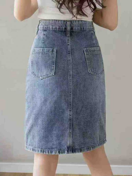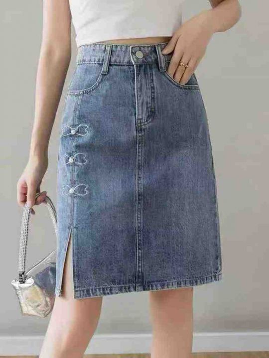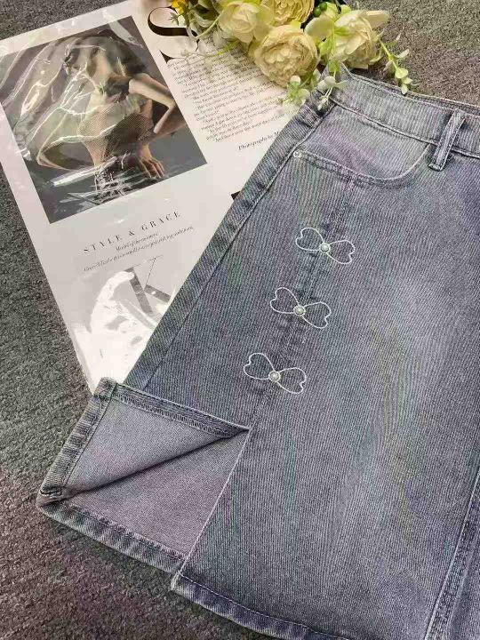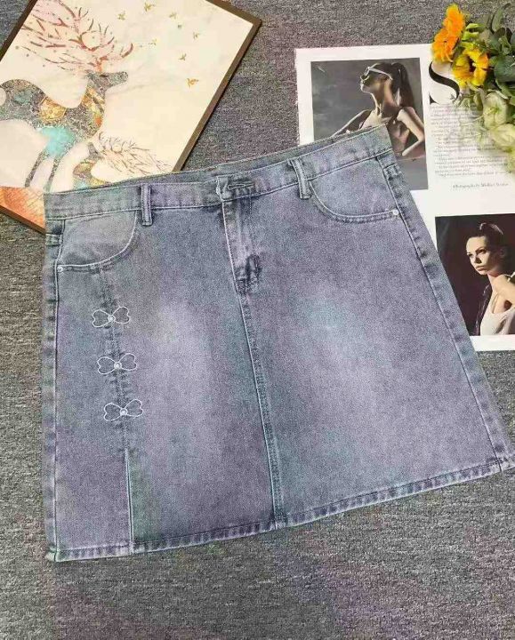 夏季新款设计款开叉钉珠绣花高腰大码胖妹妹洗水棉牛仔半身裙,独立包装,码数L--5xL码,144件,全清5.8元超低价秒杀!