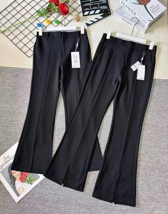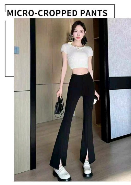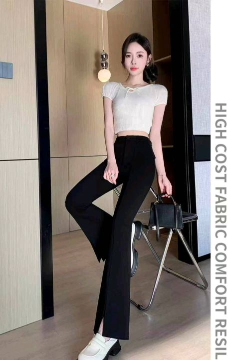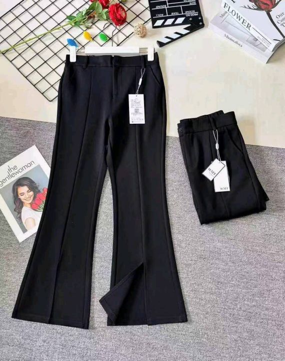 天猫精选660条左右 春秋高腰显瘦弹力黑色西装开叉微喇裤,裤头内里有包边,品质可入实体店,独立包装带吊牌 码数S~5XL码,全清12.8