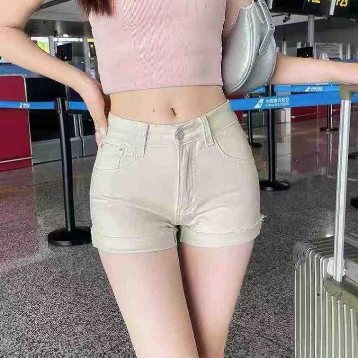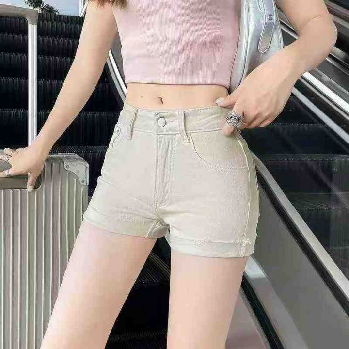 夏季新款高弹力性感辣妹纯欲风洗水棉牛仔短裤,2个款...