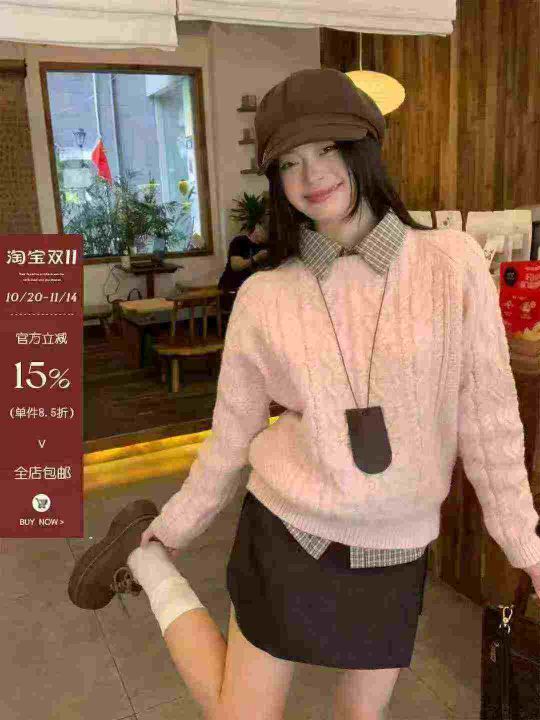 全清10.9,日系圆领宽松麻花毛衣女秋冬温柔软糯加厚套头内搭上衣百搭...