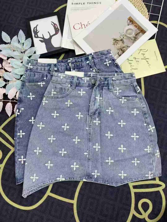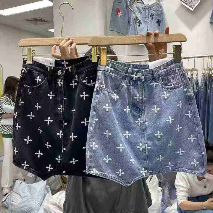 牛仔短裙☕️660条全清9.9元,分货+1, 码数S到XL,独立包装。单款3色,高腰显瘦满印设计感半身裙夏季新款蓝色牛仔短裙时尚休闲百搭