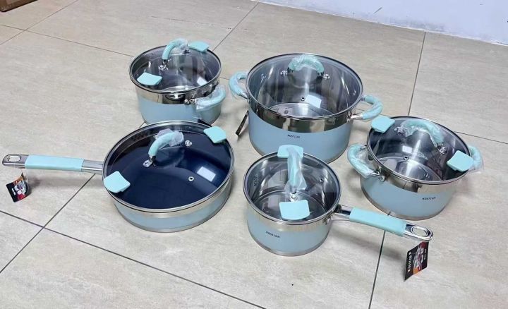 出口外贸10件套,高档不锈钢套锅,高档喷漆工艺,厚重...