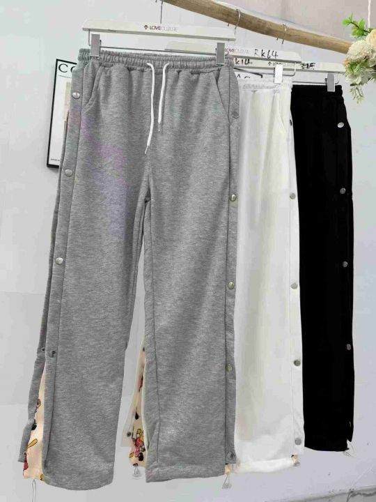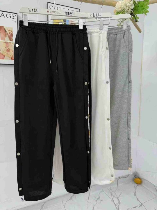 535件男女同款国潮小熊拼接排扣裤痞帅街头风高街ins潮休闲束脚直筒裤美式hiphop!单款3色