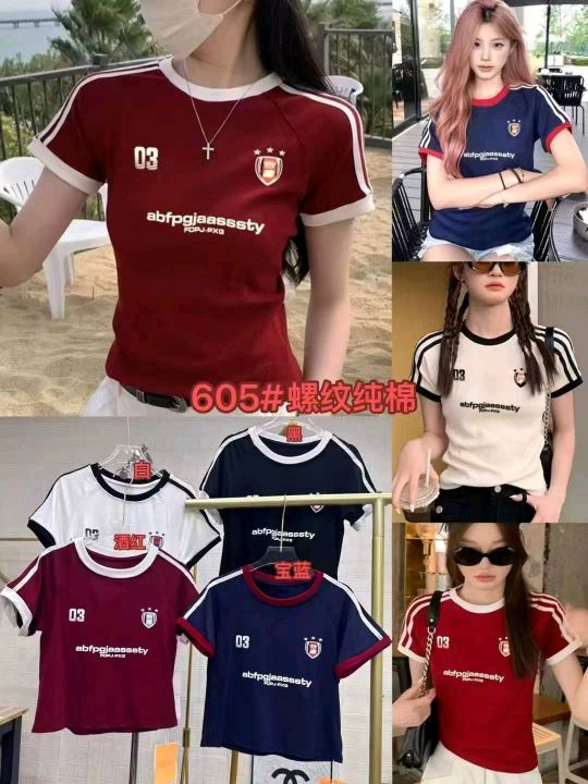 纯棉美式拉边条辣妹短袖T恤16000件全清12.8元分货+1,均码高弹力,小整款多花型颜色,图片款独立包装吊牌发货,美式复古字母刺绣正肩圆领修身显瘦插肩短款短袖T恤女