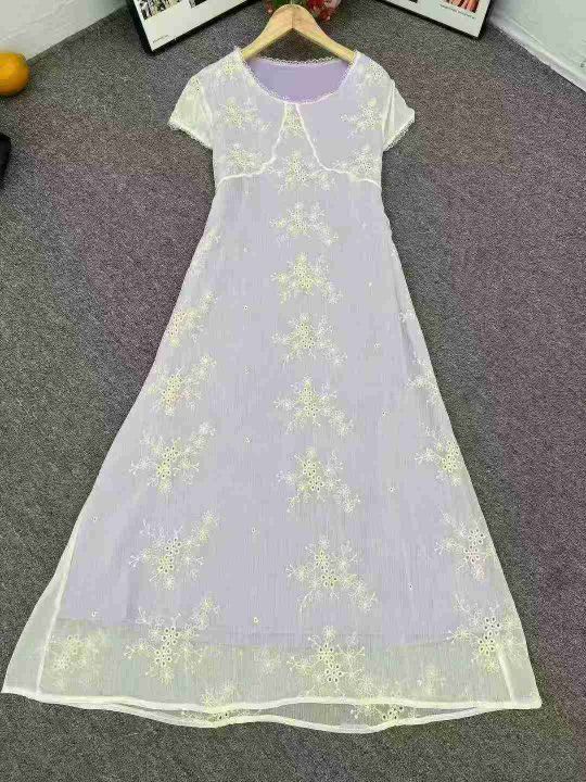 4600件高品质盛夏气质收腰显瘦修身长款连衣裙,工艺绣花,单款单色,独立包装,码数M-L。
