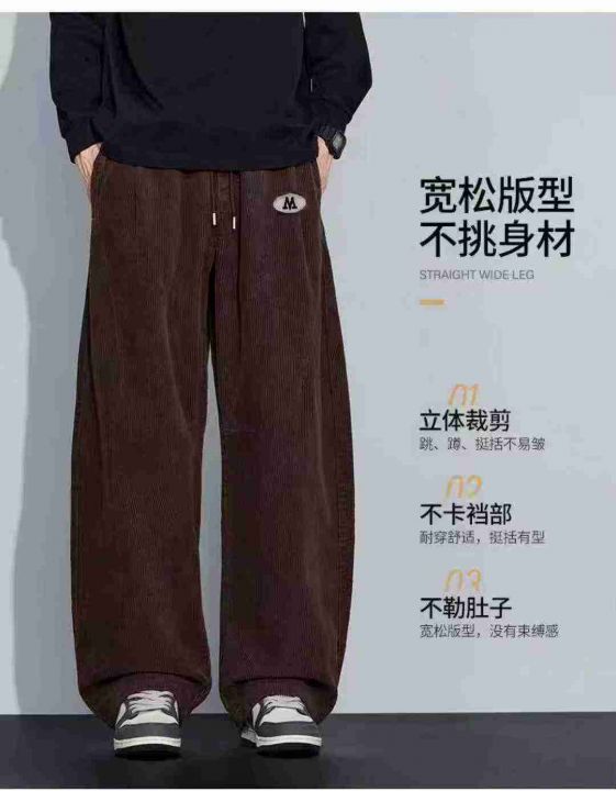 灯芯绒宽松直筒阔腿运动百搭休闲加绒加厚长裤,独立包装,码数395条,加绒加厚,码数M-3XL,L码裤长105厘米,(货号0914#47)