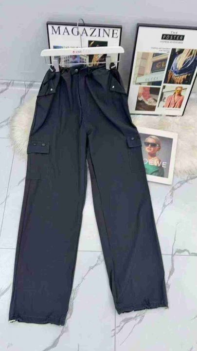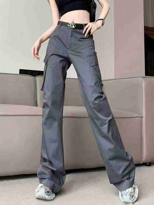 280件原创设计深灰色休闲裤抽绳多口袋工装裤新款直通宽松百搭长裤!