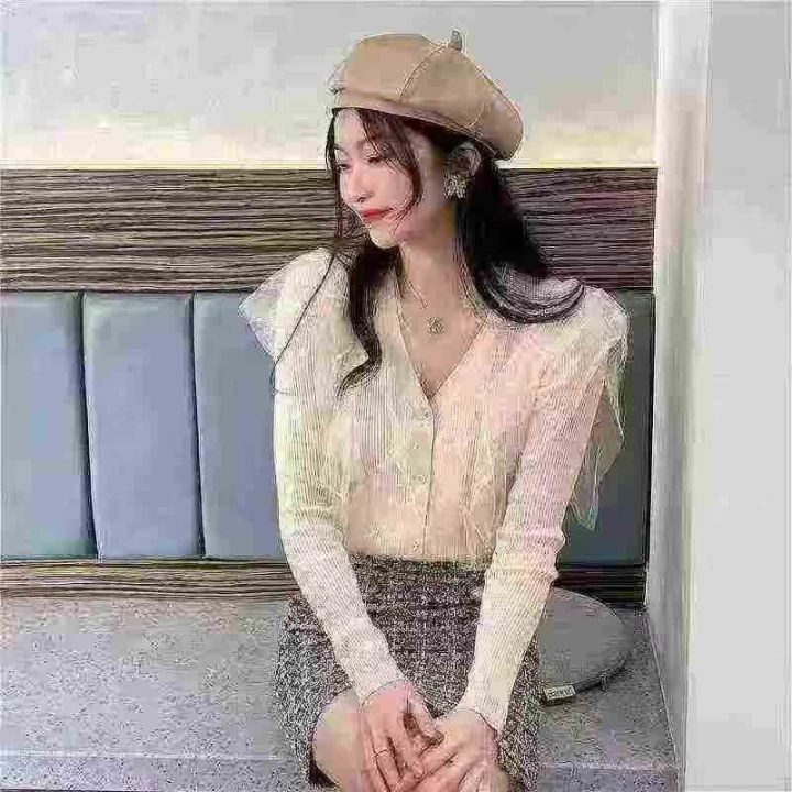 拼接网纱针织衫开衫修身显瘦网红靓妹毛衣打底小外套,独立包装,五个颜色,...