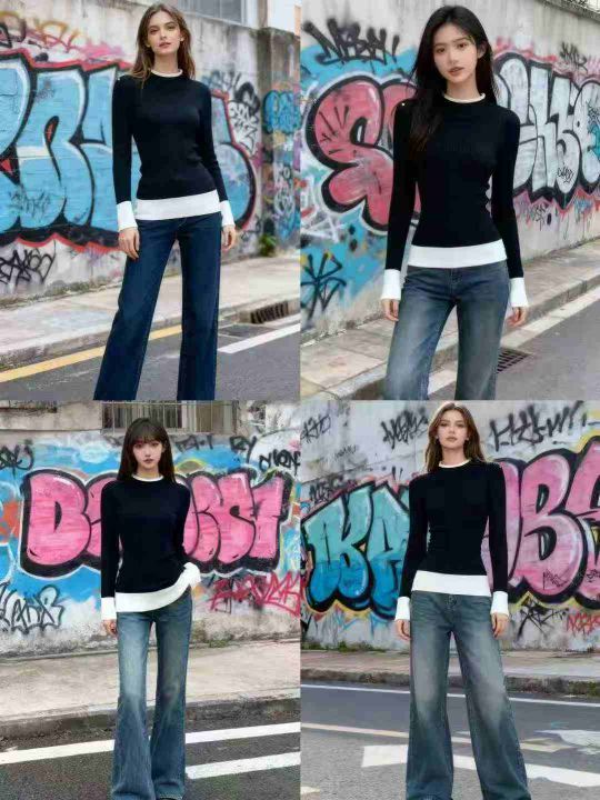 包芯纱半高领套头撞色打底针织毛衣,品质好独立包装,M L码,主色黑蓝色白色少,850件左右,清7.5,分➕1