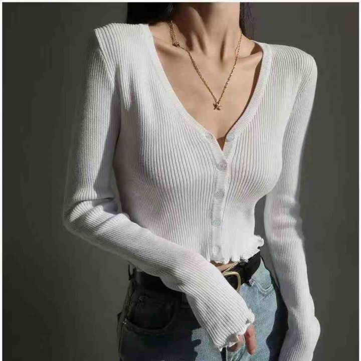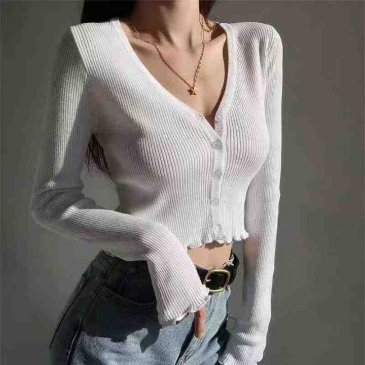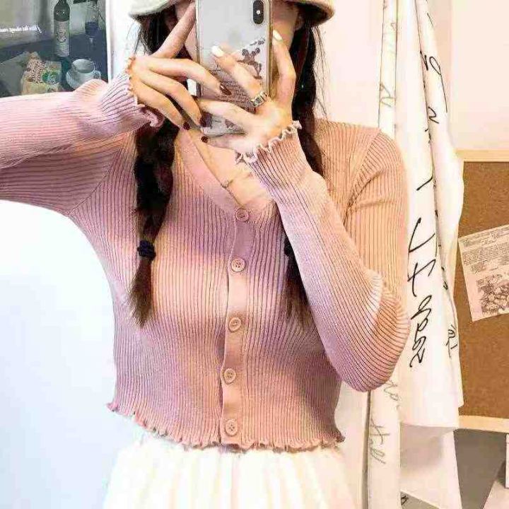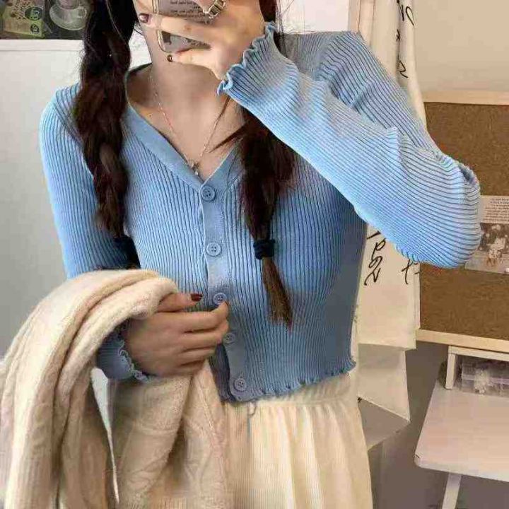 秋季新款复古辣妹高腰短款设计感小众木耳边v领针织毛衣开衫,独立包装,均码面料柔软舒适弹力大,1340件,全清5.9元超低价秒杀!分货加一!
