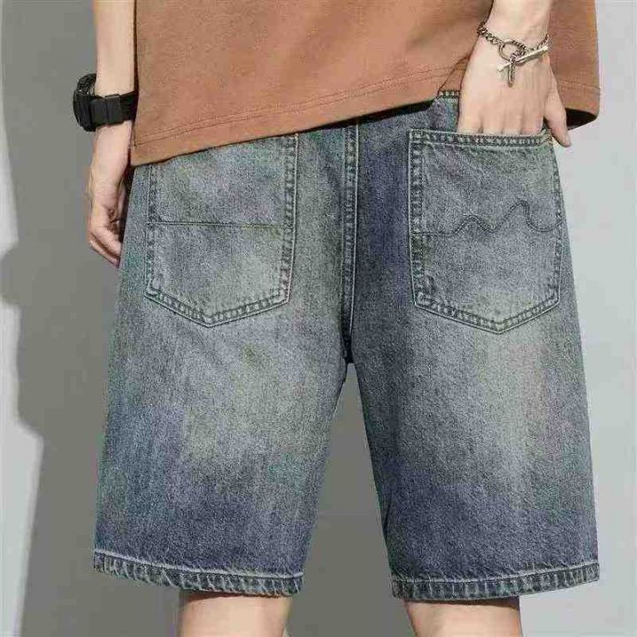 G903美式复古牛仔短裤男士夏季薄款宽松休闲中裤五分裤...