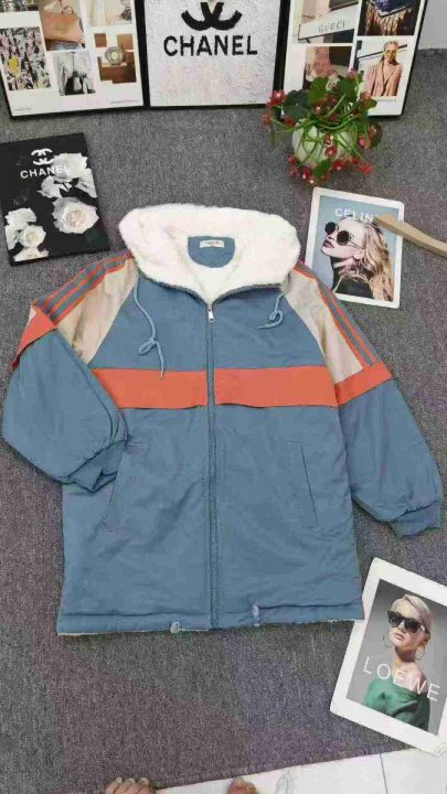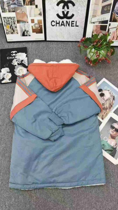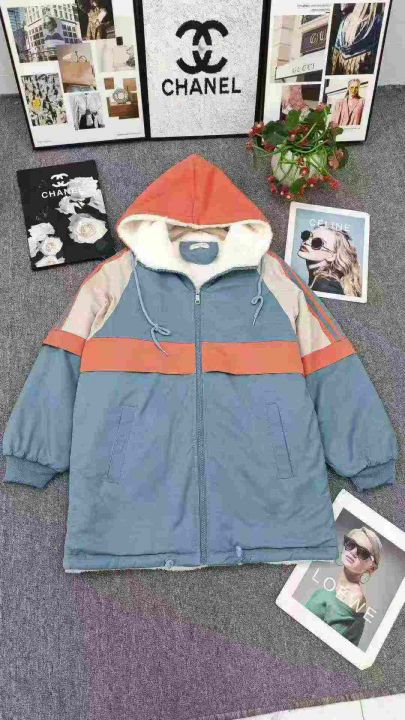 皮草内胆拼色连帽棉服,清,29.8单款单色150少—170码...
