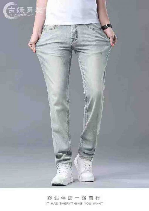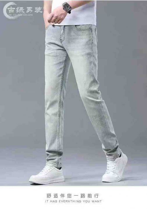 秋季新款高弹力洗水棉男士修身复古浅色牛仔裤,独立包...