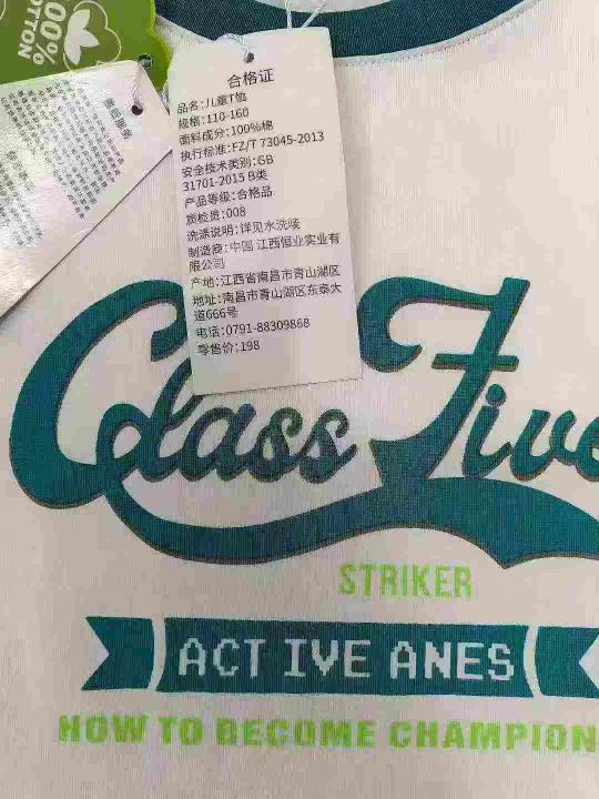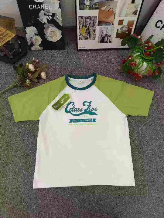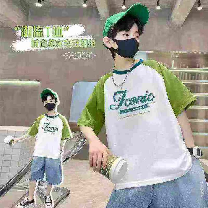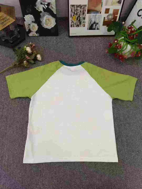 纯棉英文字母印花拼袖童装T恤 数量1000件左右 尺码110--160 整款单色 后领包边 独立包装带吊牌 模特图供参考