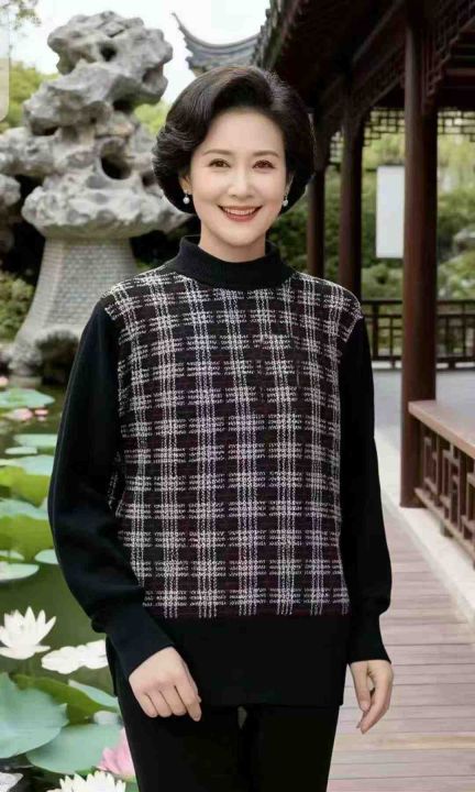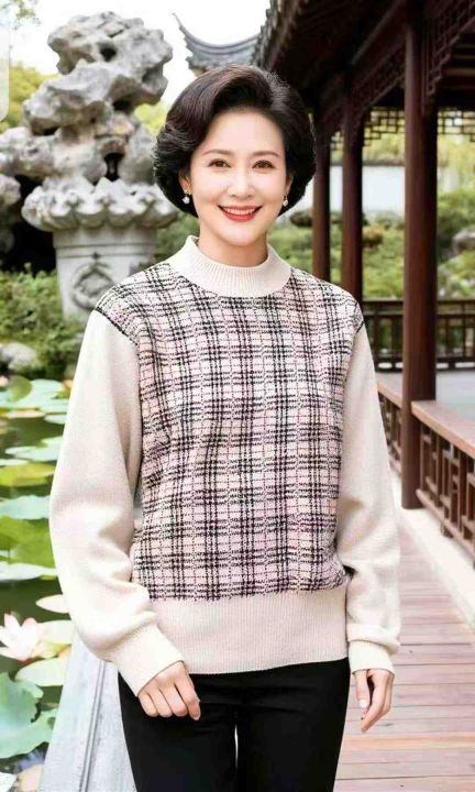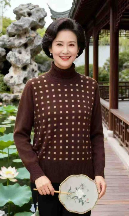 秋冬新款大码宽松轻熟女装提花显瘦天丝羊毛羊绒套头毛...