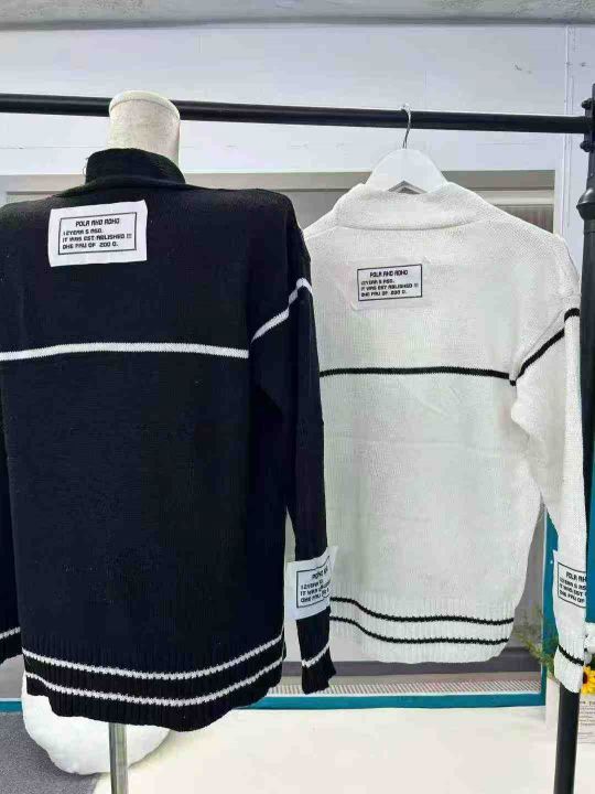 大版型潮流时装毛衣,黑白二色,黑色多点,独立包装,码数1-4码,数量114件左右,超低价清货