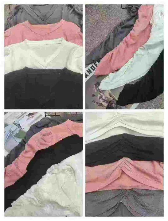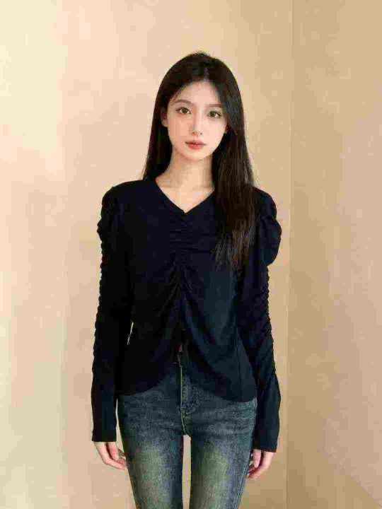 设计褶皱锁骨长袖辣妹修身新款收腰显瘦针织上衣,独立包装,均码,380件,清6.9,分➕1