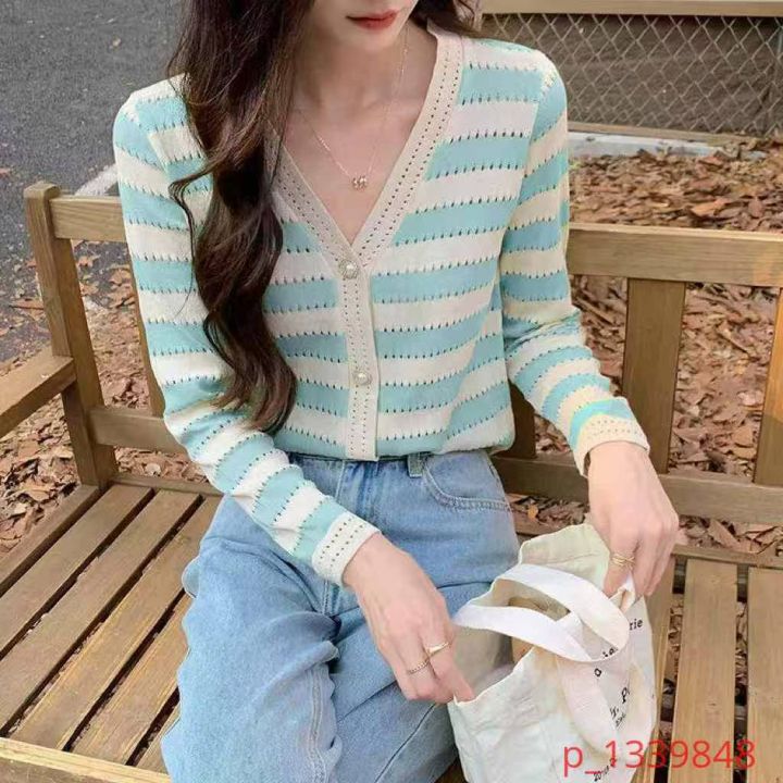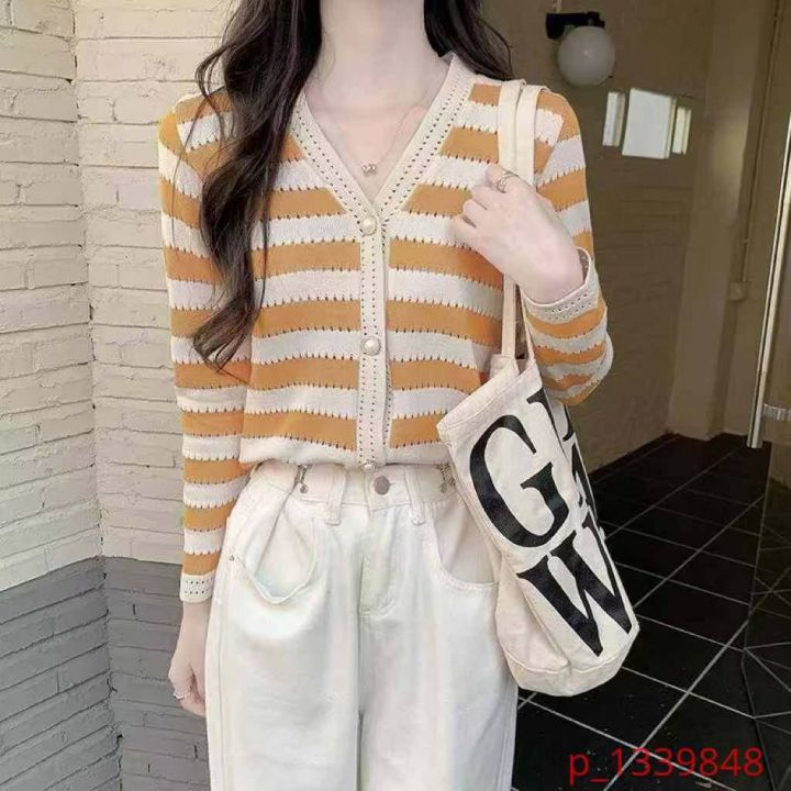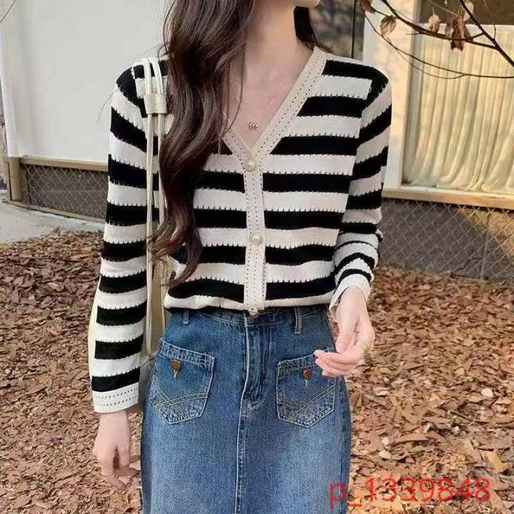 编号:[26494] ¥8.9元 女装/女士服装 上衣 毛衣/毛线衫/针织衫 开衫 秋季新款复古面料柔软舒适透气遮肚显瘦宽松款均码独立包装全清8.9元超低价秒杀Autumn New Retro Striped V-neck Loose Little Fragrant Wind Design Slimming Long Sleeve Knitted Cardiganسترة مبطنة طويلة الأكمام بتصميم أنيق وفضفاض لطيف برقبة على شكل حرف V وخطوط عتيقة جديدة للخريف 分货加:1 库存:420件