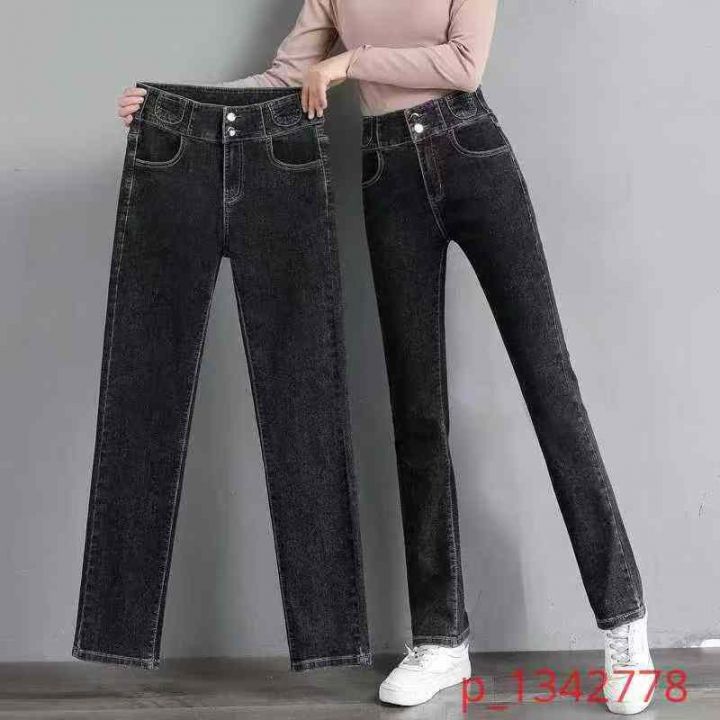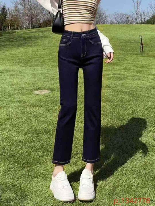 ☕️高弹力高腰直筒牛仔裤女士春秋季新款弹力宽松修身...